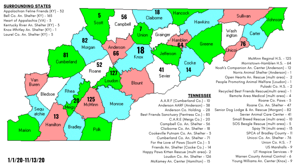 One of the ways we’re different is that 39 Partner Shelters in East Tennessee & beyond need our help daily. We transfer in animals from throughout the state and beyond. We also partner within the community, with vets and businesses to care for and adopt out our companion animals and support pet owners. More ›
